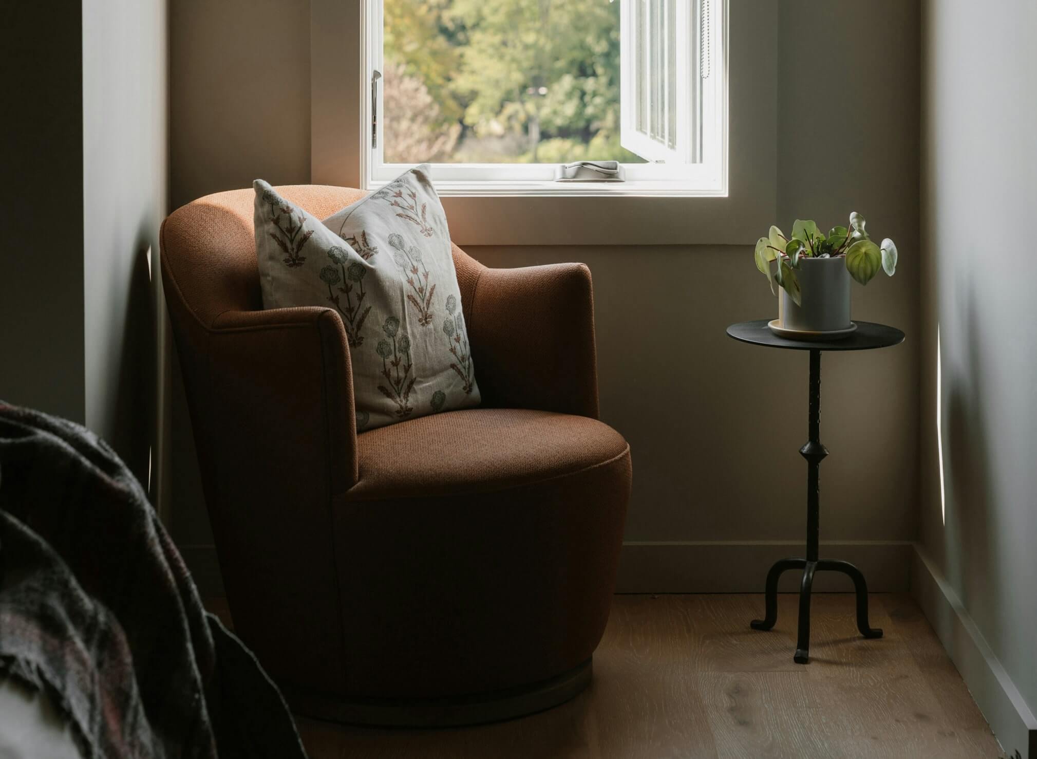 A serene redesign of a private residence focused on natural textures and restrained elegance. The space blends warm timber, soft linens, and diffused lighting to create a calm, livable atmosphere.